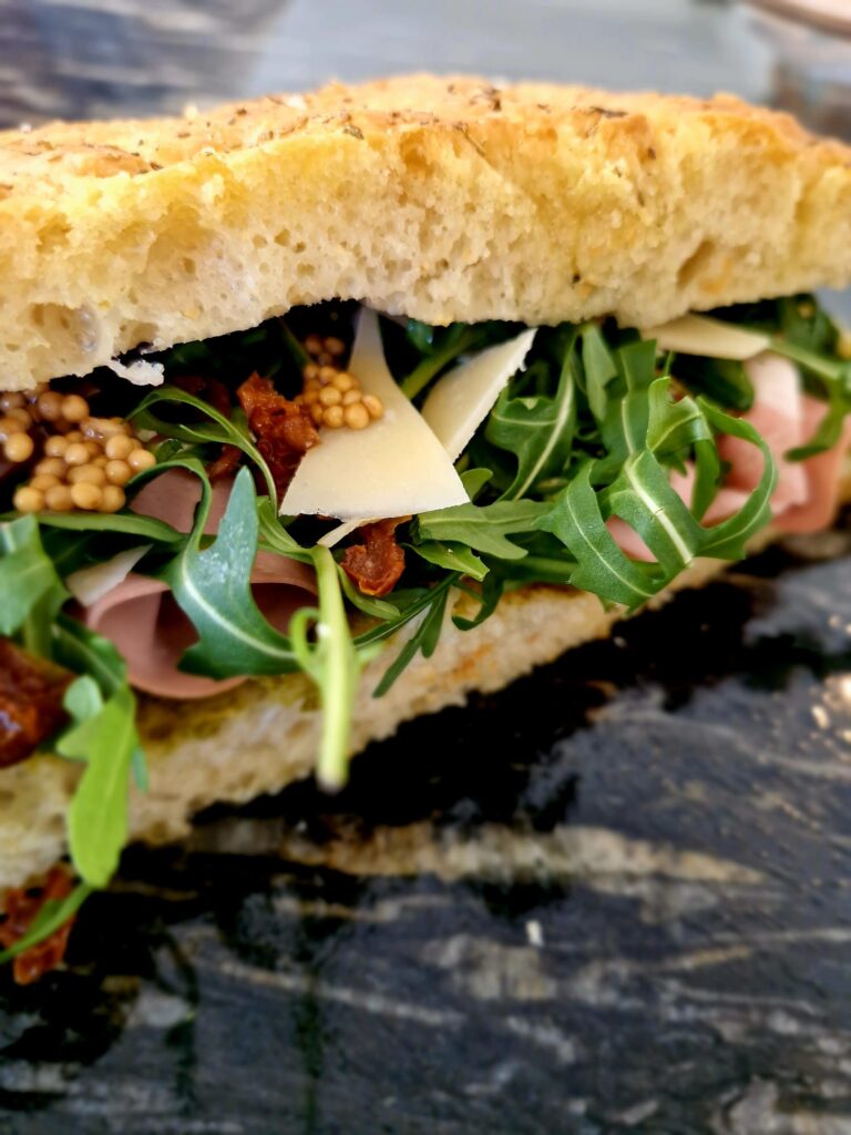 Au menu : focaccias garnies, sandwichs, pâtes, desserts gourmands et boissons, préparés avec soin.